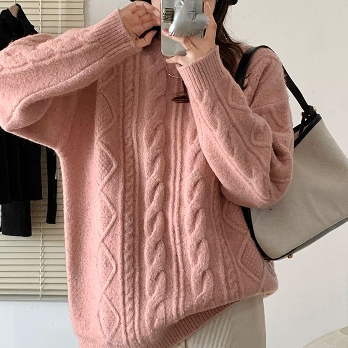 Christmas Red Cable-Knit Crew Neck Pullover Sweater