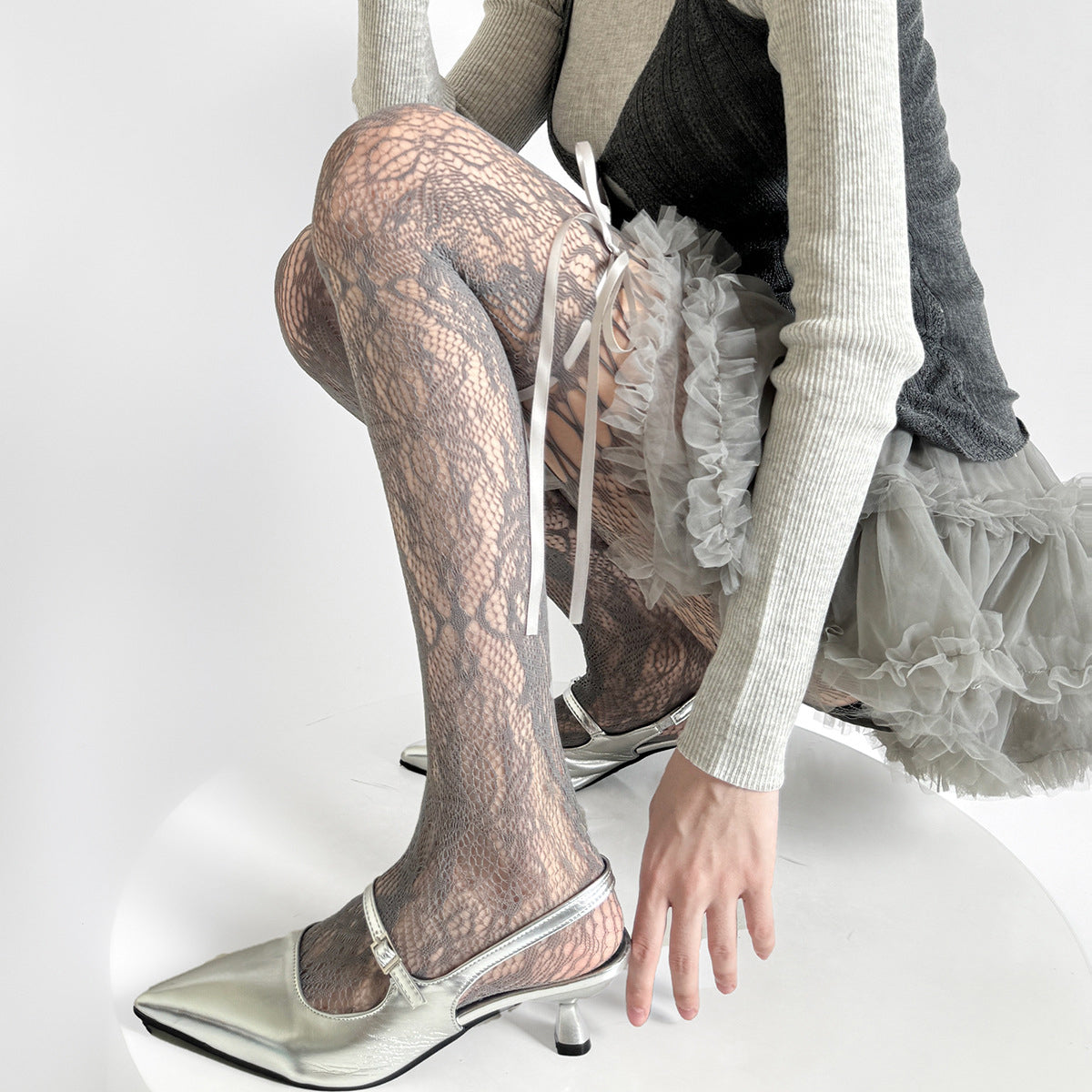 Retro Hollow Lace Bow Tie Fishnet Stockings
