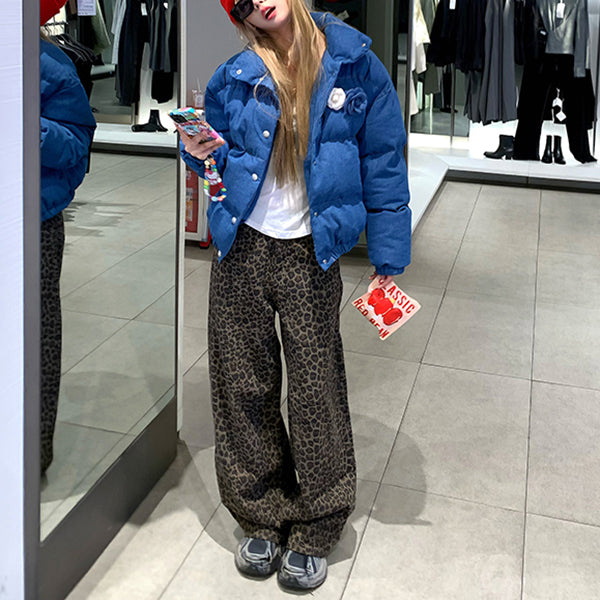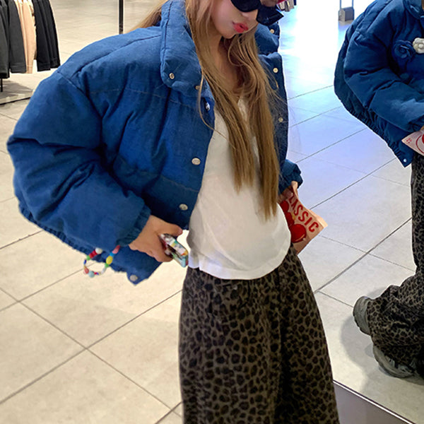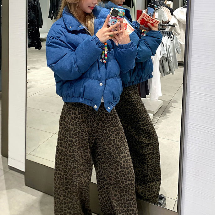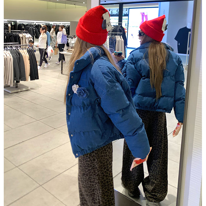 Stylish Stand-Up Collar Blue Cotton Coat