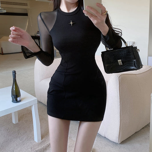 Black Mesh Stitching See-Through Bodycon Dress