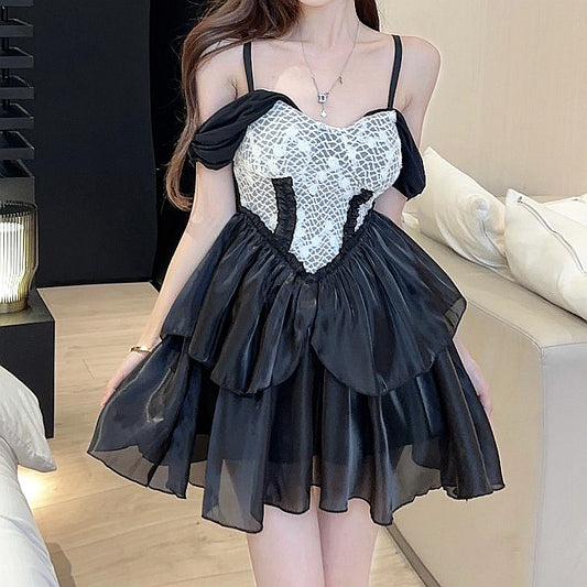 Falbala Temperament Cake Black Cami Dress