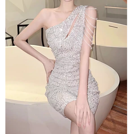 Slanted Shoulder Irregular Line Slim Summer Cocktail Dress