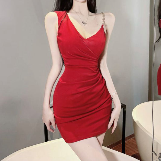 Backless V-Neck High Waist Chain Slip Dress