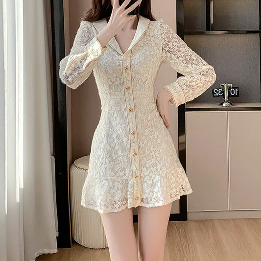 Waist Slimming Perm Long-Sleeved Holiday Dress