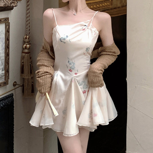 Slim-Fitting Mid-Waist Sexy Floral Cami Dress