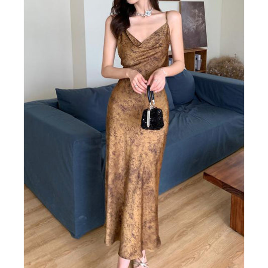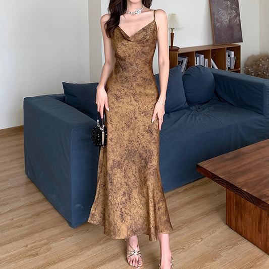 V-Neck Backless Floral Cami Temperament Fishtail Dress