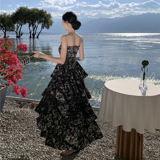 French Lace Backless Sweet Floral Sling Seaside Holiday Dress
