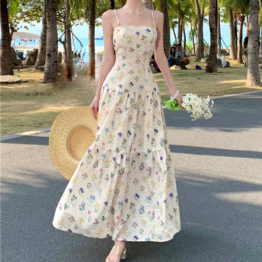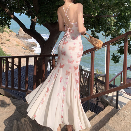V-Neck Backless Floral Cami Temperament Fishtail Dress