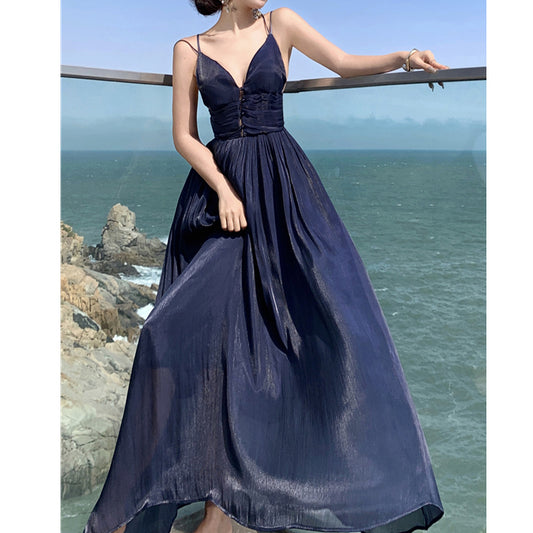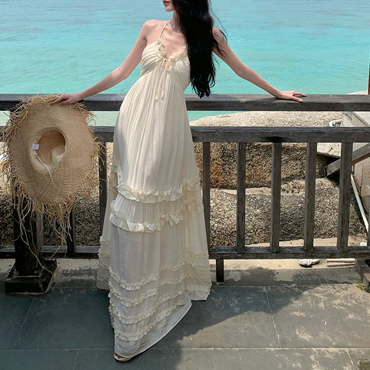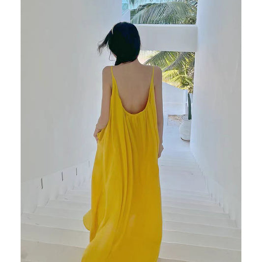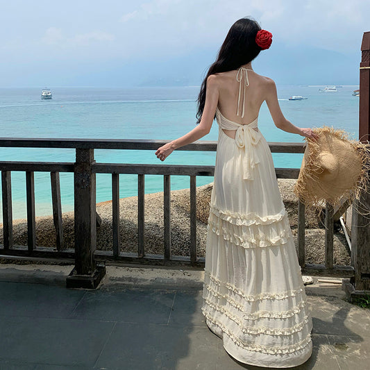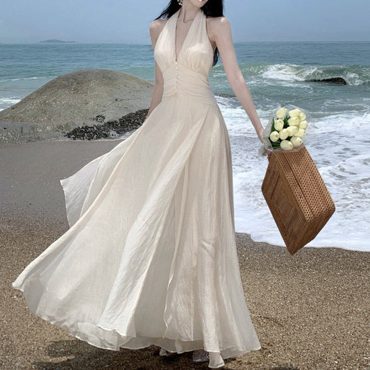 Backless Halter Neck V-Neck Seaside Holiday Dress
