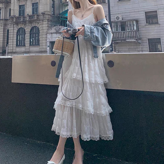 Sweet And Elegant Irregular Chiffon Suspender Dress