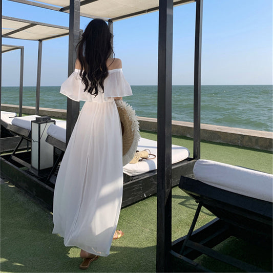 Off-Shoulder Sleeveless Slit Seaside Holiday Dress