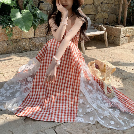 Plaid V-Neck A-Line Holiday Suspender Dress