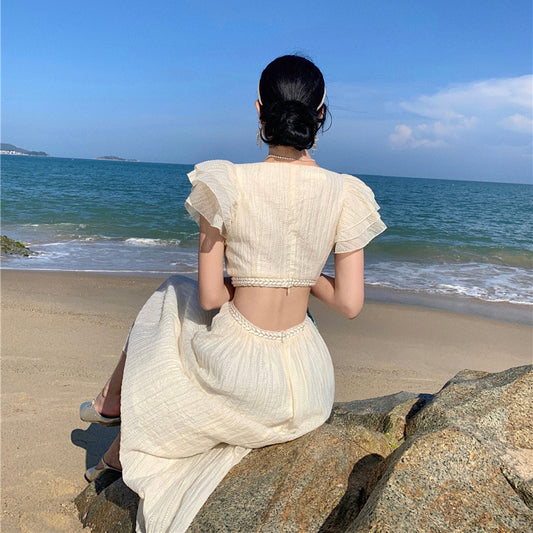 Hollow Waist Exposed Holiday Flying Sleeve Dress