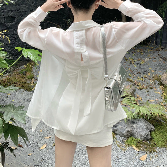 Bow Back Long Sleeve Loose Shirt Top