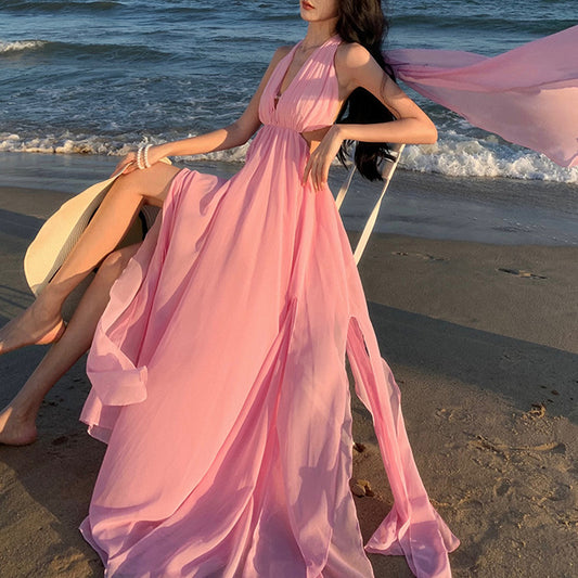 Chiffon V-Neck Beach Resort Long Dress