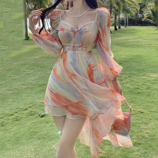 Tie-Dye Chiffon Irregular Backless Holiday Dress