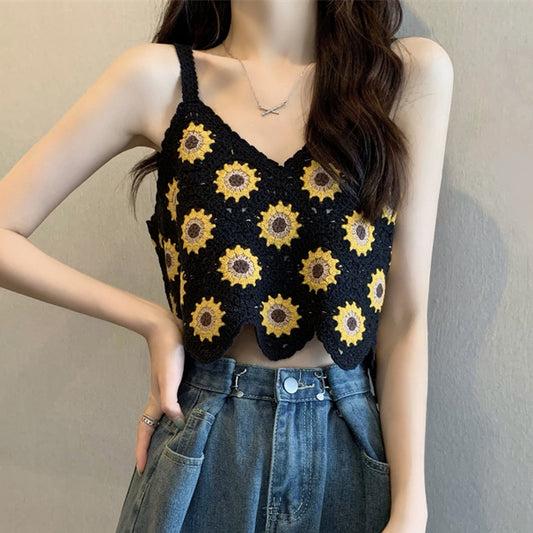Vintage Crochet V-Neck Knitted Tank Top
