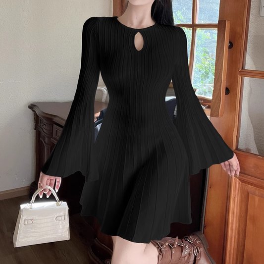 Hollow Wide Sleeve Round Neck Slim A-Line Dress
