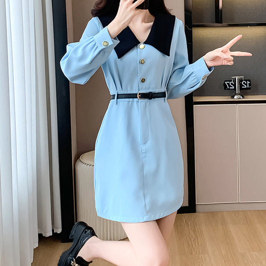 Blue Baby Doll Collar Waist A-Line Shirt Dress