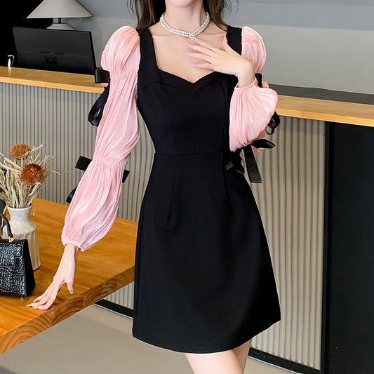 AlennusmyyntiFlower Bow Long Sleeve Black Slim Dress