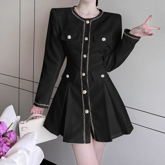 AlennusmyyntiSingle-Breasted Round-Neck Slim-Fit Pleated Dress