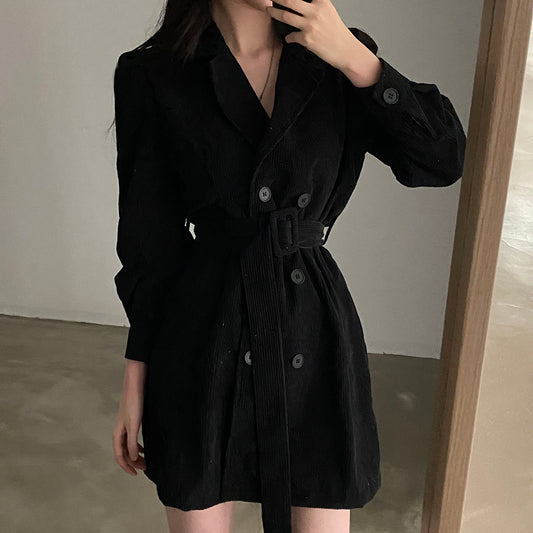 AlennusmyyntiDouble Breasted Corduroy Belt Suit Dress
