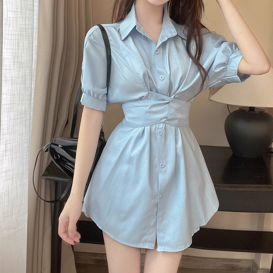 AlennusmyyntiWaist-Tie Lace-Up Short-Sleeved Shirt Dress