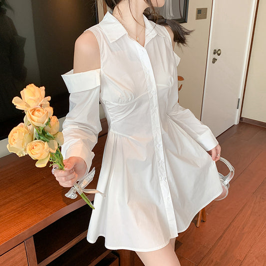 AlennusmyyntiOff-The-Shoulder Waist Polo Collar Shirt Dress