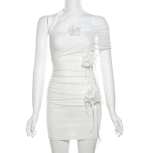 AlennusmyyntiMesh Off-Shoulder Halter Neck Flower Bodycon Dress