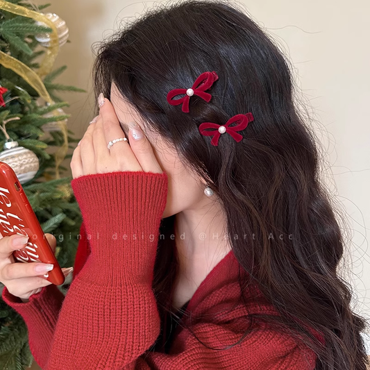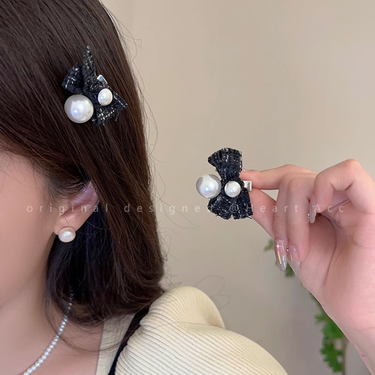 Bow Pearl Flocked Clip Side Hairpin Hair Accessory