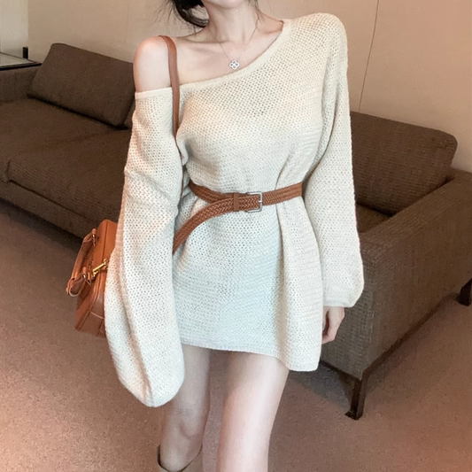 Off-Shoulder Sweater Long-Sleeved Knitted Dress