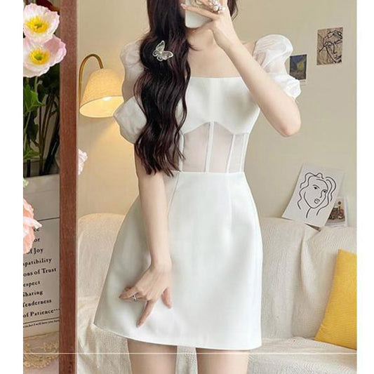 Fake Two-Piece Puff Short-Sleeved A-Line Dress
