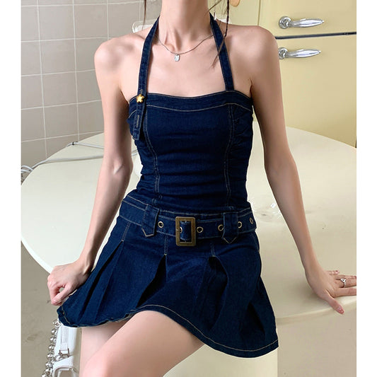 Bow Sleeves Halterneck Low-Cut Dress Set