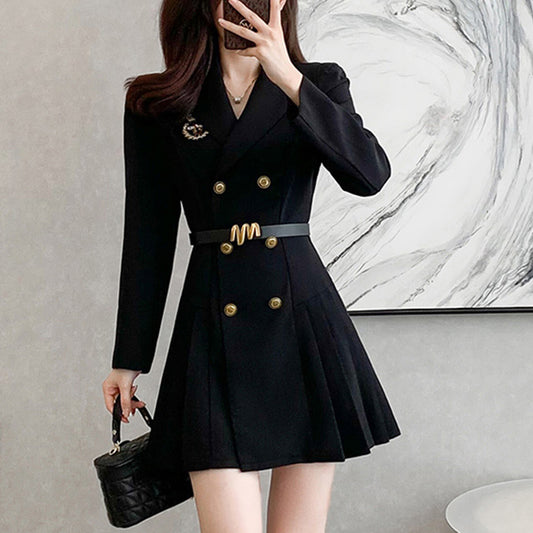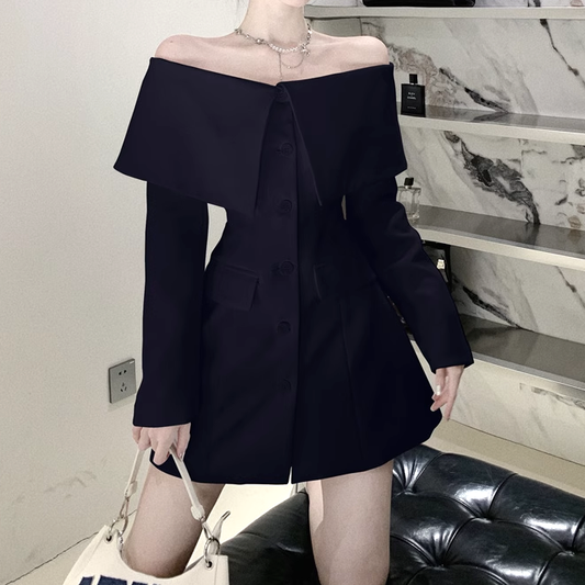 In offertaOff-Shoulder Waisted Long-Sleeved Suit Dress