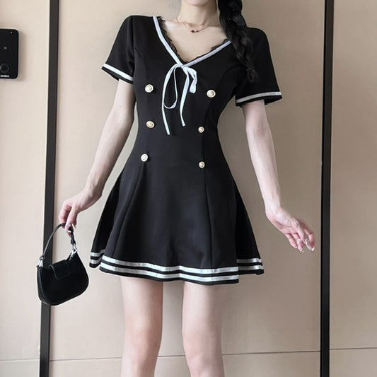 Double-Breasted Strappy Uniform Short-Sleeved Dress