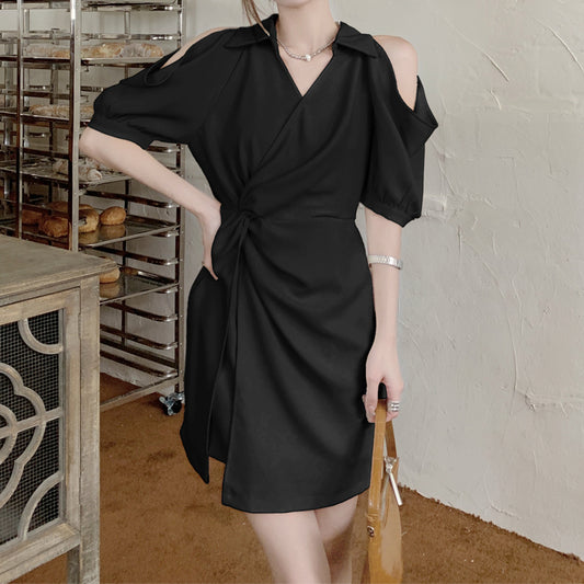Off-Shoulder Waisted Breathable Shirt Dress Set
