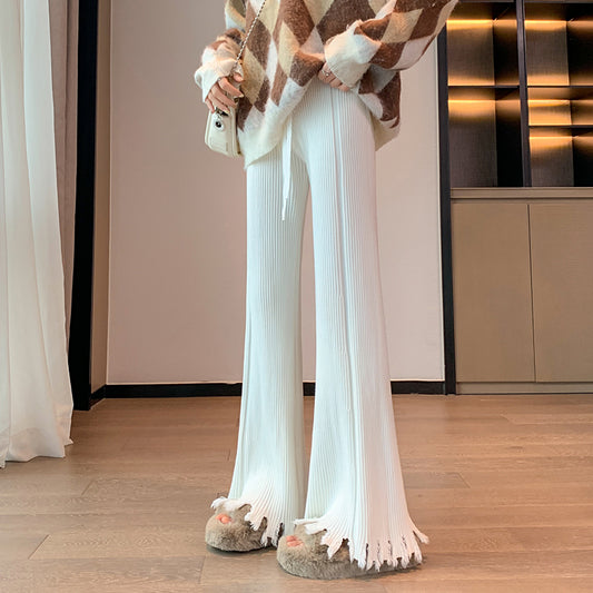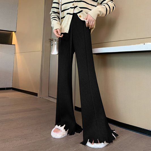 Wide Leg Straight Fringe Knit Casual Long Pants
