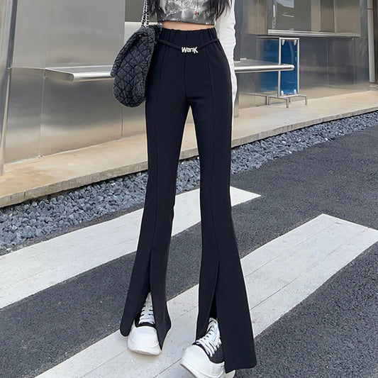 Black Micro Flared Pants High Waist Slit Trousers
