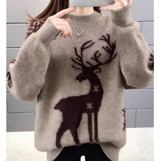 Hooded Loose Red Long Sleeve Christmas Sweater