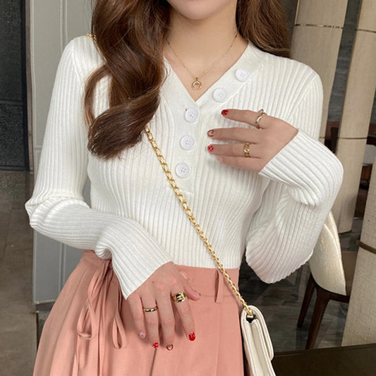 In offertaKnitted Top V-Neck Long Sleeves Sweater