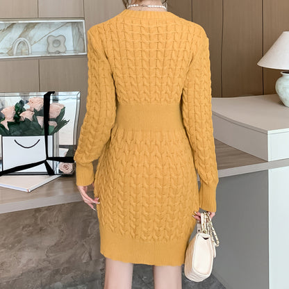 Round Neck Linen Sweater Hip-Covering Knitted Dress