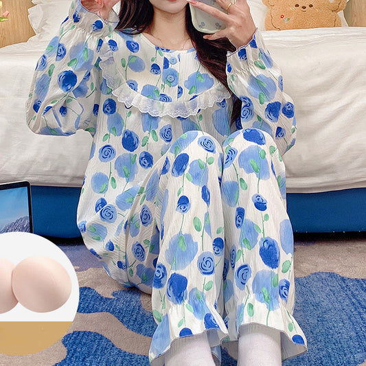 Cloud Cotton Round Tie Chest Pad Home Pajamas Set