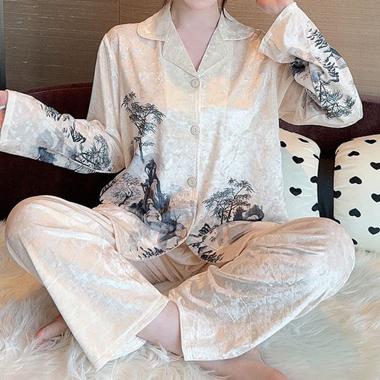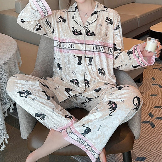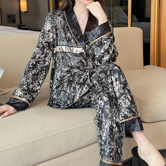 Velvet Light Luxury Home Long-Sleeved Pajamas Set
