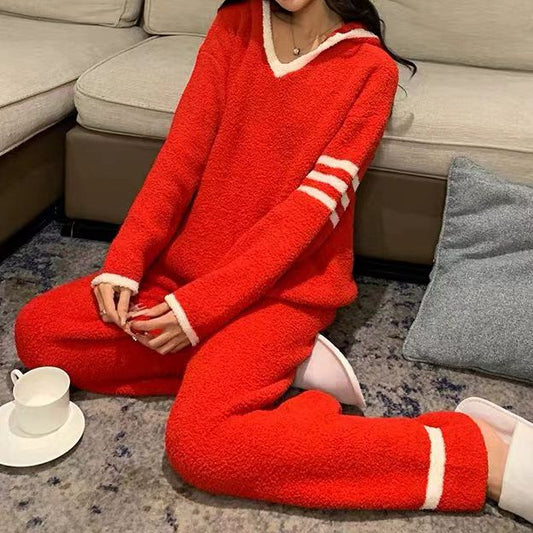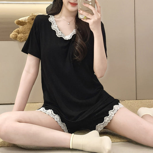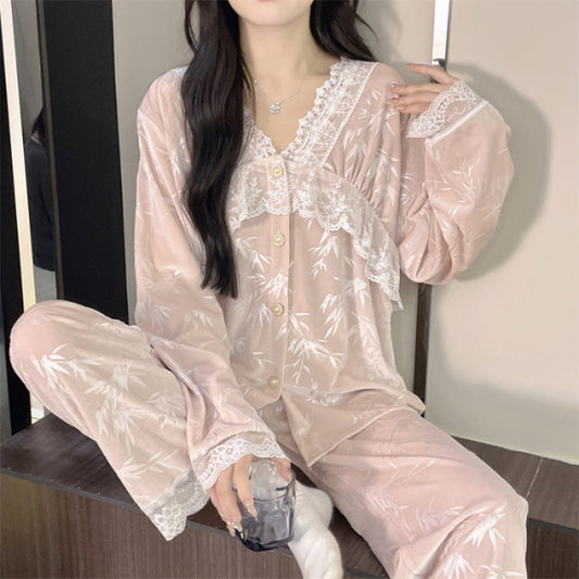Lace Edge V-Neck Velvet Home Pajamas Set