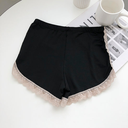 Lace Edge Mid-Waist Elastic Thin Safety Pants Shorts