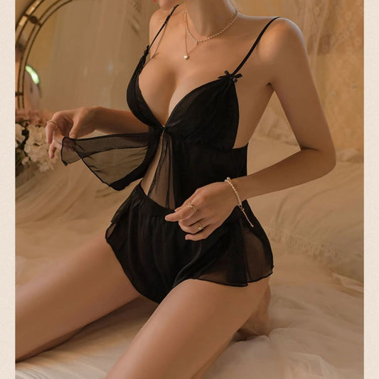 Ice Silk Mesh See-Through Sexy Suspender Pajamas