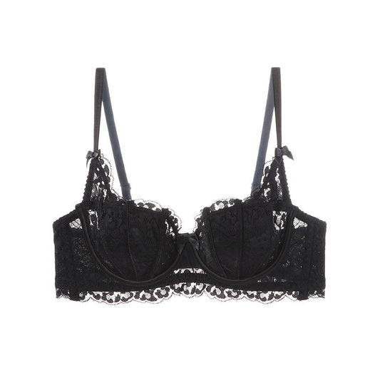Hollow Sexy Lace Gathered Bra And Panties Set