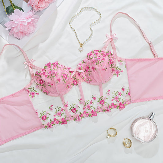 Embroidered Lace Push Up Sexy Bra Panties Set