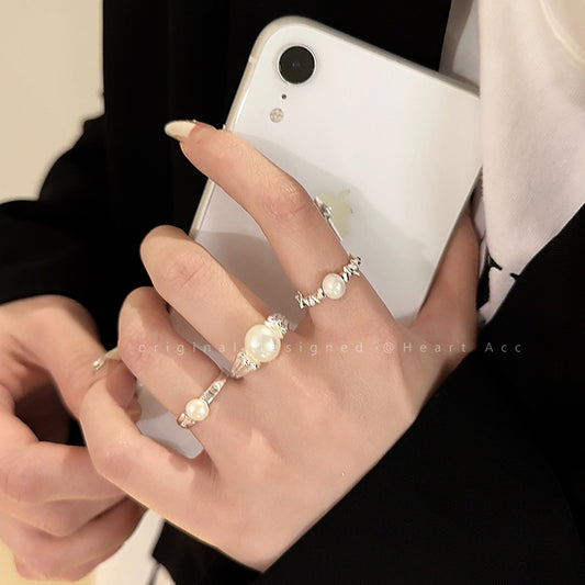 Vintage Personality Simple Metal Pearl Ring