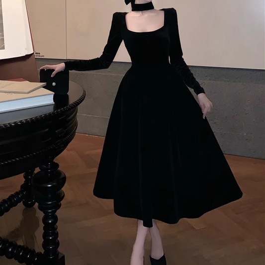 Hepburn Style Black V-Neck Bow Knitted Dress